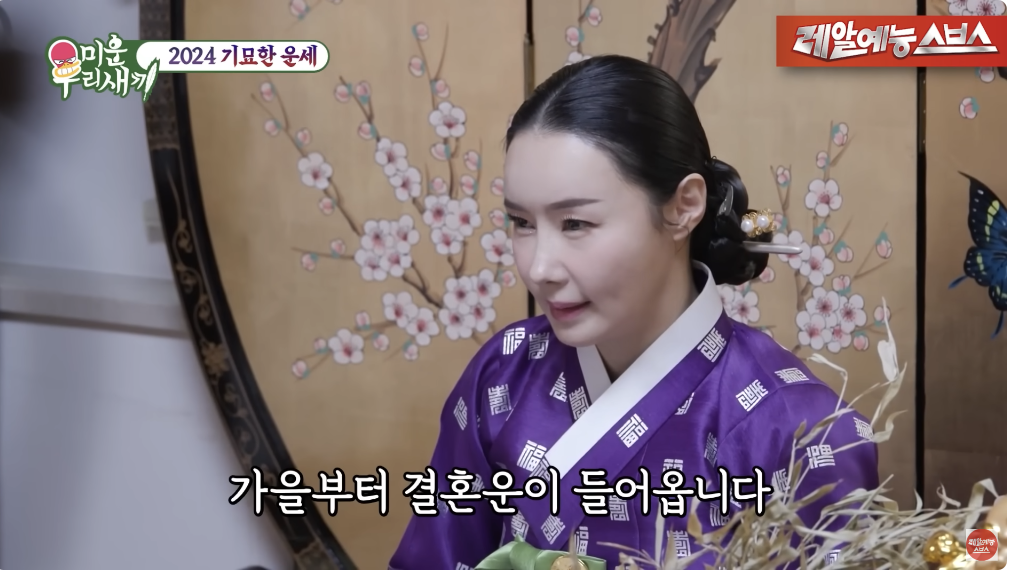 미우새에 출연한 무당은 이동건에게 굉장히 자존심이 강한 사람이라며, 2024년 3월 부터 5월까지 활발한 연예계 활동의 문이 열린다고 말을 했는데요. 드라마가 들어오며, 6월과 7월에 뜰 일이 잇다고 했습니다. 그리고 2024년 운을 보면 귀인 여성이 있으며, 50살이 넘어서 결혼운이 있다며 사업하는 여성을 만나라고 조언을 하기도 했습니다. 그러면서 연예인을 만나면 이혼을 계속해서 할 수도 있다고 설명을 하기도 해습니다.